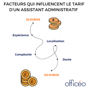 Le tarif d’une prestation de service est compris entre 35 et 60 euros de l’heure, que ce soit en traitant avec un prestataire ou directement avec un assistant administratif freelance.